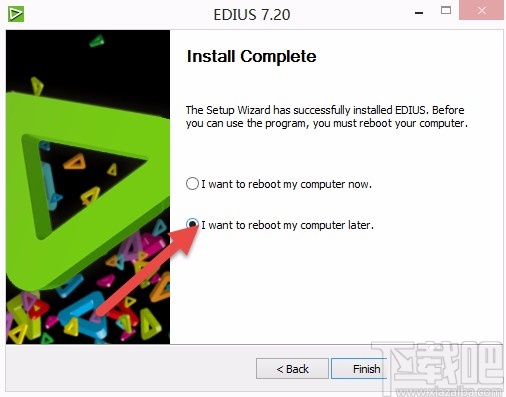 5.之后下一步就会继续安装Edius Pro软件了,根据向导成功安装软件之后,我们在最后的界面中勾选“I want to reboot my computer later”,稍后重启这款软件。
