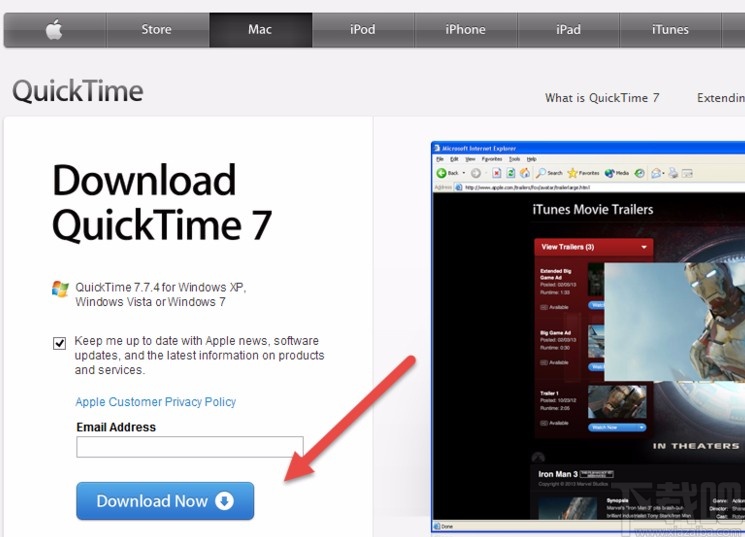 3.在安装过程中会提示我们下载quicktime,我们在出现的界面中点击下载按钮,然后将它下载下来。