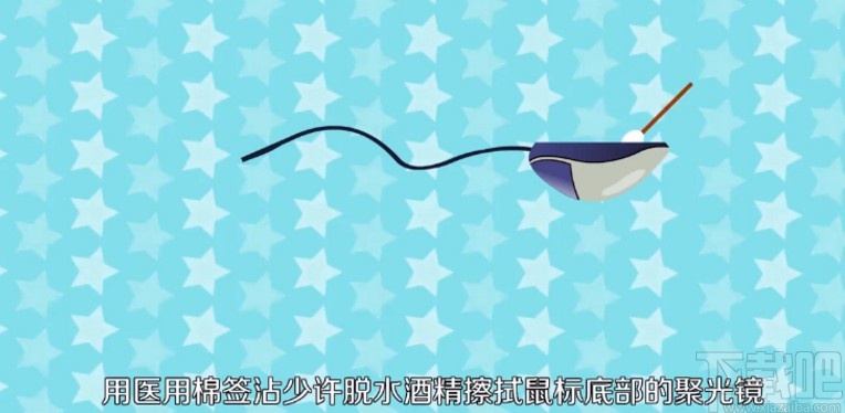 3.还有一种方法就是利用棉签来蘸取少许脱水酒精擦拭鼠标底部的聚光镜,擦拭干净之后查看鼠标的情况。