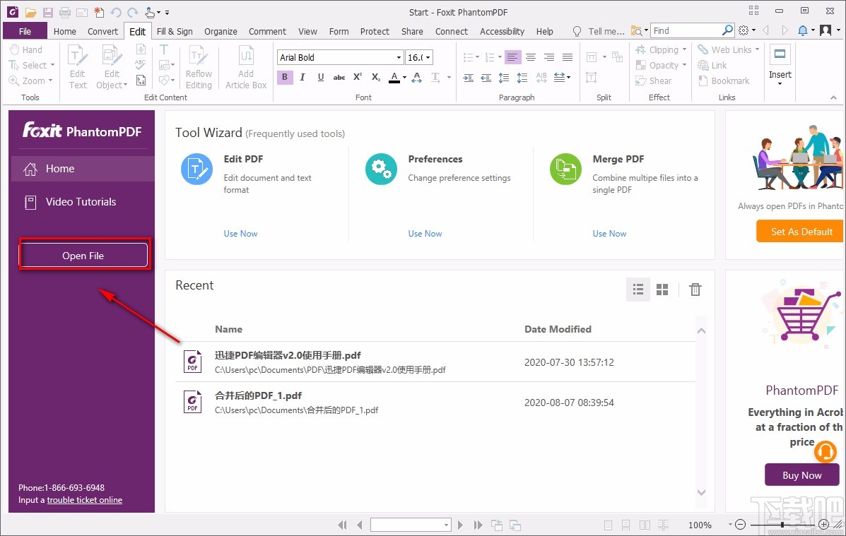 foxit phantom是一款非常好用的PDF编辑软件,该软件界面简单清爽,不仅给用户提供了PDF文档阅读、创建、编辑的功能,而且还能够对PDF文件进行其他操作,比如PDF合并、PDF加密解密等,功能十分全面。这款软件是一款操作简单的PDF办公软件,但是很多新入手这款软件的朋友不知道怎么在软件中对文档进行编辑操作,也不知道怎么删除文字。其实这款软件删除文字的方法很简单,那么接下来小编就给大家详细介绍一下foxit phantom删除文字的具体操作方法,有需要的朋友可以看一看。