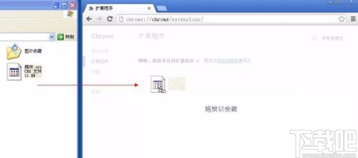 2.打开谷歌浏览器的扩展程序界面之后,我们将下载好的ntko web chrome插件直接拖拽到浏览器的扩展程序管理界面,拖放进来之后松开鼠标。
