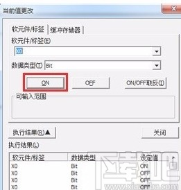 6.随后界面上就会出现一个当前值更改窗口,在窗口中找到“ON”按钮,我们点击该按钮就可以对工程进行修改了。
