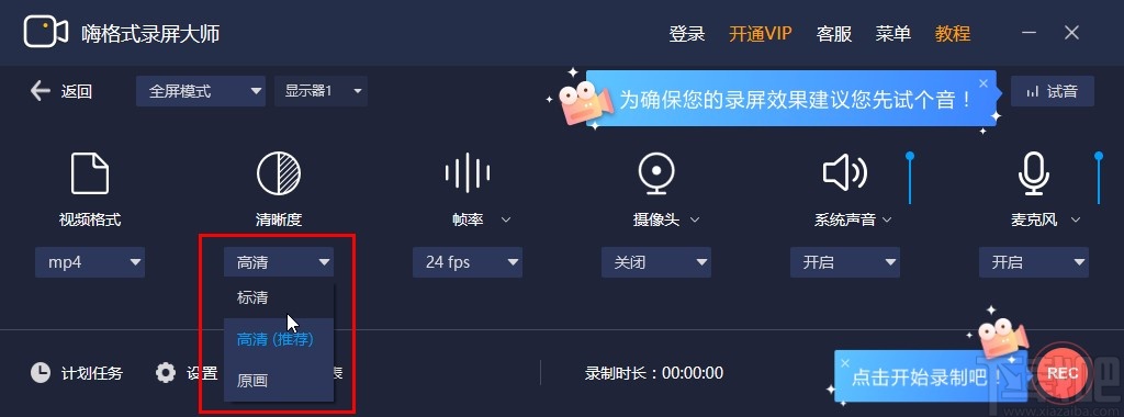 3.下一步是对录制视频的清晰度进行设置,我们根据自己的需求来选择想要的视频清晰度即可。