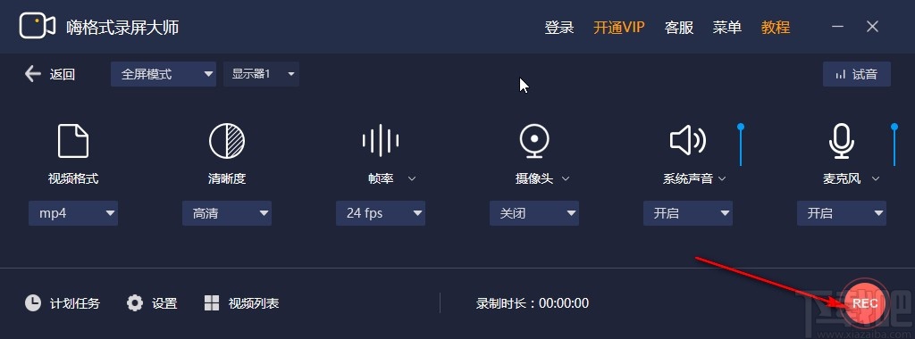 6.设置好以上参数之后我们就可以点击REC按钮来开始录制电脑屏幕了,直接点击即可开始录屏操作。