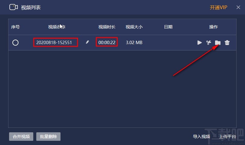 8.停止录制之后会自动打开视频列表界面,其中的文件就是我们已经录制好的文件,可以点击播放按钮播放查看,也可以点击文件夹图标打开视频输出文件夹。