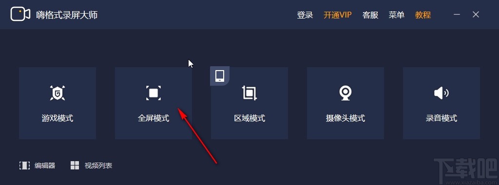 1.首先第一步我们打开软件之后,需要自己在软件中选择一个录制电脑屏幕的模式,小编就以全屏模式来跟大家演示,点击进入到其中。