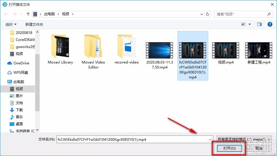 3.在文件添加页面中,我们找到需要裁剪画面的视频文件后,再点击页面右下角的“打开”按钮即可将文件添加到软件中。