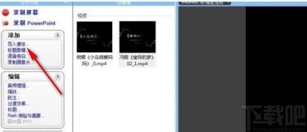 2.将想要剪切的视频添加到软件界面之后,我们在添加菜单中选择标题剪辑按钮,然后进入到标题设计界面当中。