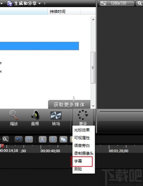 2.将视频文件导入到软件界面之后,找到其中的更多按钮,点击之后在出现的列表中选择字幕这个选项。