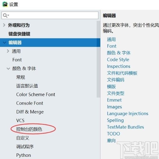 3.点击的打开编辑器选项之后,在下方的下拉列表中有颜色&字体这个选项,然后我们需要点击进入到其中。