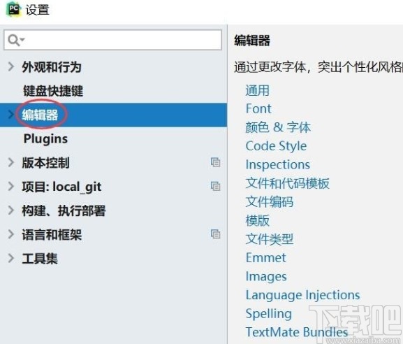 2.点击设置选项之后,在打开的设置界面左边列表中,找到编辑器这个选项,找到之后点击进去。