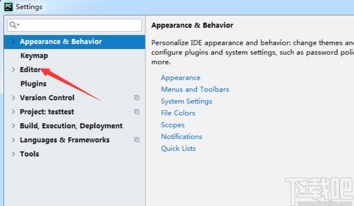 3.点击打开软件设置界面之后,在其中找到Editor这个选项之后,点击打开这个选项。