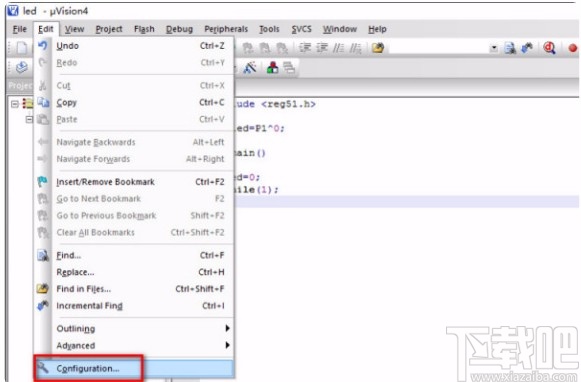 2.接着在界面左上方找到“Edit”选项,我们点击该选项会出现一个下拉框,在下拉框中选择“Configuration”选项。