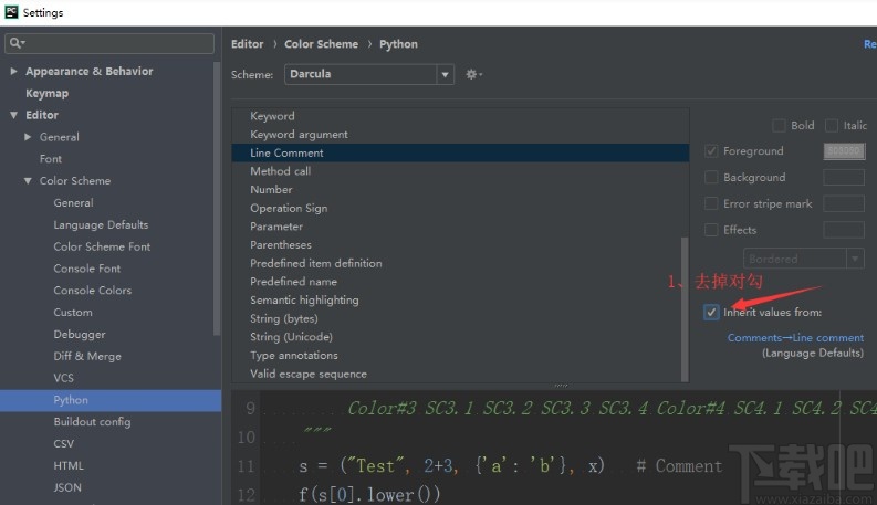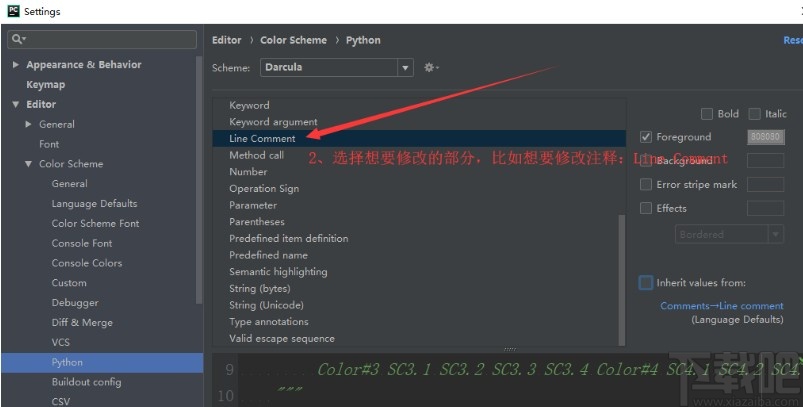 4.之后选择想要修改代码颜色的部分,比如小编选择line Comment,表示修改注释代码的颜色。