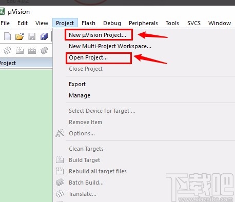 1.首先打开软件,在软件界面的顶部找到“Project”选项,我们点击该选项会出现一个下拉框,在下拉框中选择“New uVision Project”新建一个工程。