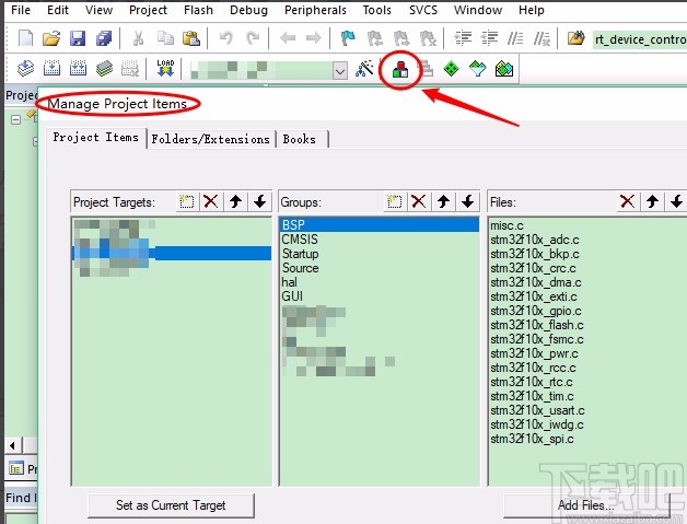 4.同时还可以点击下图中圈起来的图标打开Manage Project Items窗口,在窗口中进行项目管理、分类工程代码文件夹等。