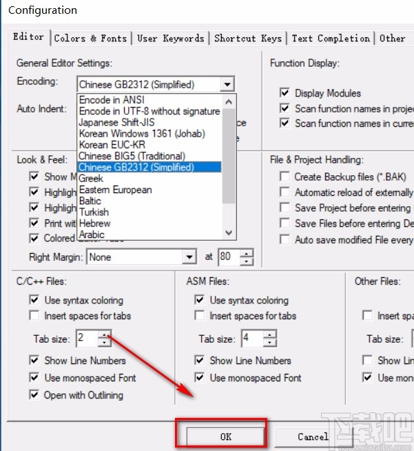 4.在“Encoding”选项后面有一个下拉框按钮,我们点击该按钮,在出现的下拉框中选择“Chinese GB2312(simplified)”选项,该选项表示简体中文编码的意思。