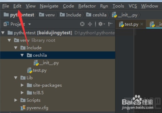2.选中这个想要删除的文件之后,点击上方的Edit编辑选项下拉列表,点击它之后打开一些编辑功能选项。