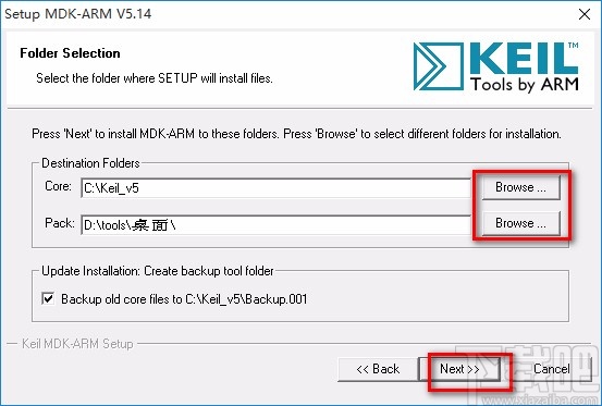 4.在文件夹选择页面中,我们点击页面右侧的两个“Browse”按钮,选择软件的下载位置和安装位置,再点击页面底部的“Next”按钮进入到客户信息页面。