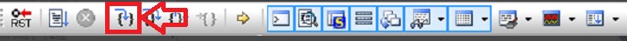 6.在主界面上方的调试工具条中,我们选择单步执行命令按钮,即下图中圈起来的图标按钮,选择此命令后,在调试的过程中就会逐行程序的执行,此时可以观察该行程序执行完以后得到的结果,方便我们的调试。