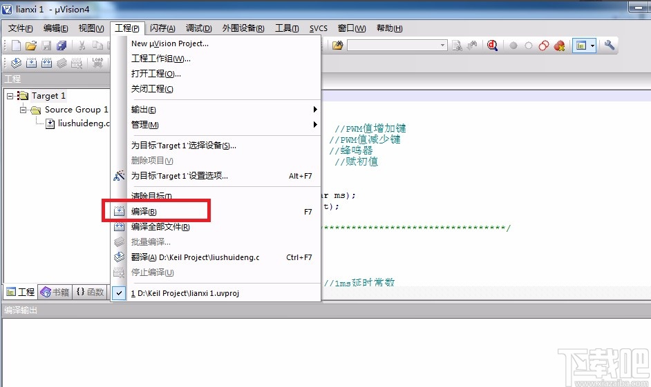 1.首先在软件中创建一个工程后,我们在界面顶部的菜单栏中点击“工程”选项,在出现的下拉框中选择“编译”即可编译工程。