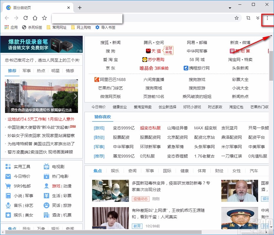 1.首先打开浏览器,我们在浏览器的右上角找到三个小点按钮,点击该按钮,其下方会出现一个下拉框。