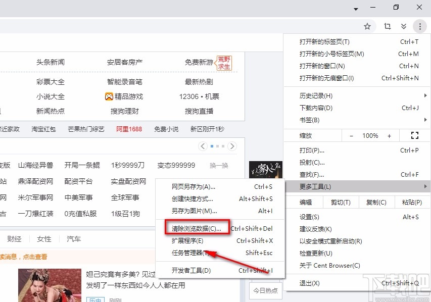 3.接着我们在子下拉框中找到“清除浏览数据”选项,点击该选项可以打开清除浏览数据窗口。