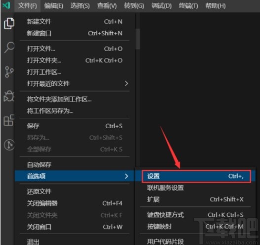 3.点击首选项之后,下一步在出现的选项中,找到设置选项,点击之后打开软件的设置界面。