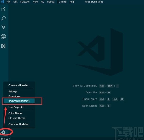 1.首先第一步我们打开软件之后,在界面左下角点击齿轮图标,点击之后在出现的选项中选择Keyboard Shortcuts这个选项。