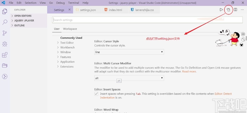 4.下一步我们在出现的界面右上角找到下图中圈出的图标,点击之后打开settings.json文件。