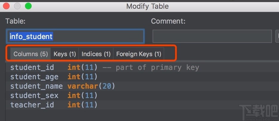 6.最后界面上就会出现一个修改页面,我们在修改页面中选择下图标识的选项就可以查看需要的表结构信息。