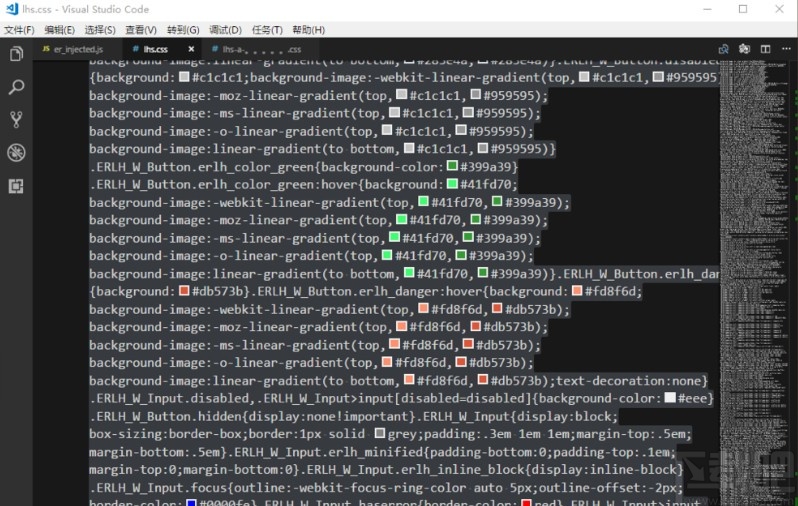 1.首先我们看到还没有格式化处理的css文件代码,如下图中所示,这样是很难在代码中查看一些重要样式设置的。