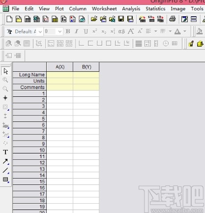 1.首先第一步我们打开软件之后打开一个工作界面,如下图中所示,然后我们在long name位置处填写名称,units位置填写单位,然后按下Ctrl+C、Ctrl+V将测量数据填写到黄色单元格下方的空格当中。