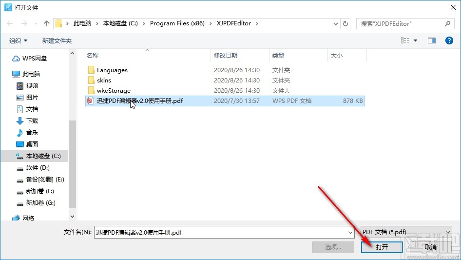 2.点击打开按钮之后在打开的选择文件界面中,我们选中想要处理的PDF文件之后点击右下角的打开按钮。