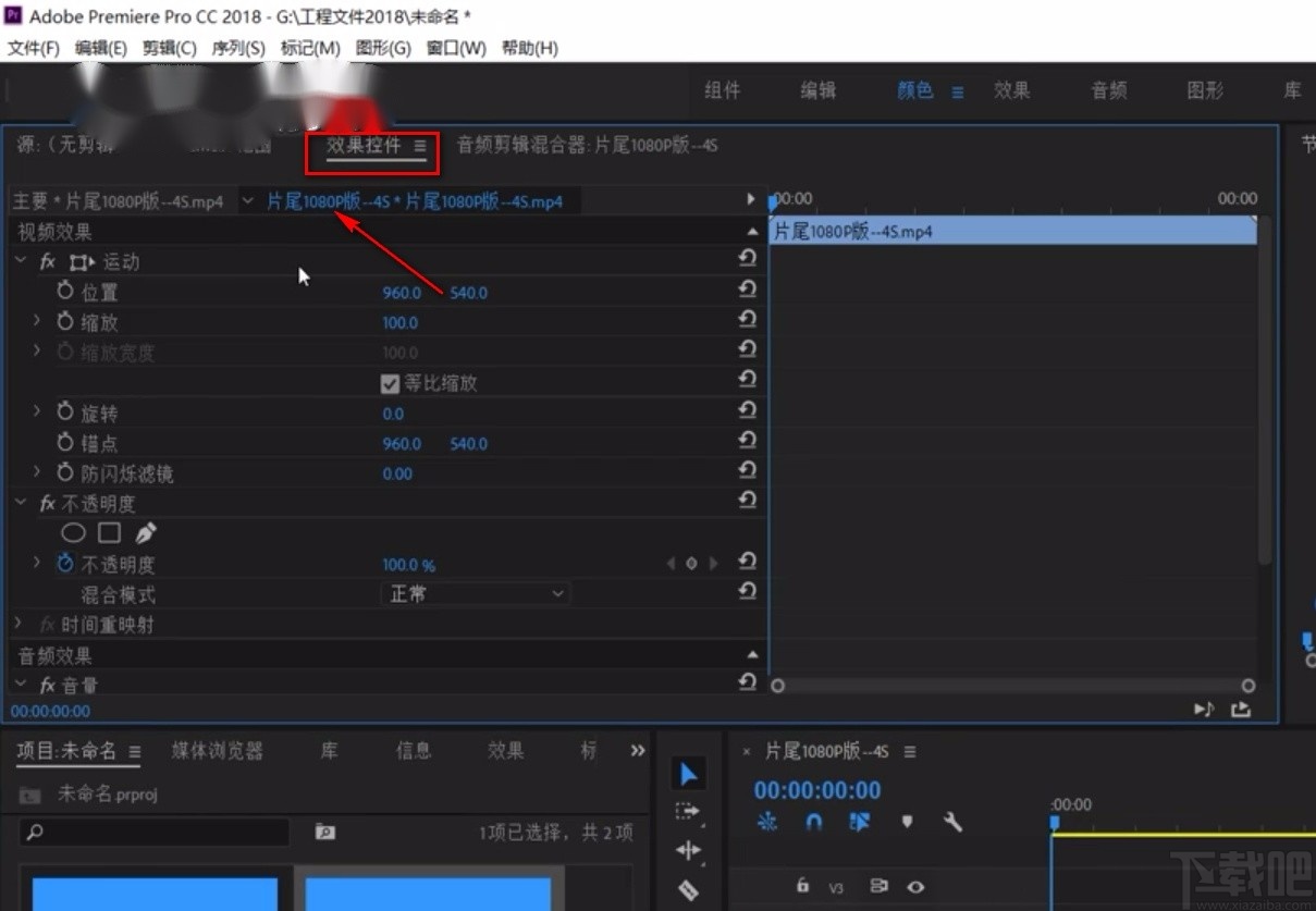2.接着我们在界面左上方找到“效果控件”选项,点击该选项,下方就会出现很多相关操作选项。