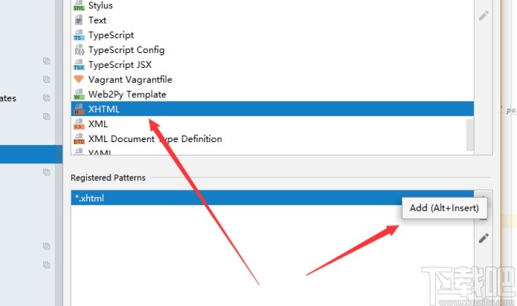 5.接着我们可以在上方选择文件类型之后,找到对应出现的后缀名,右键点击选择将它添加进去。
