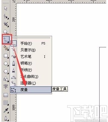 2.接着在界面左侧工具栏中点击手绘工具按钮,我们在旁边出现的下拉框中选择“度量”选项。