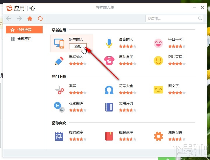 3.点击添加按钮之后打开应用中心界面,在界面中选中想要添加的工具,点击它下方的添加按钮即可进行添加这个工具的操作。