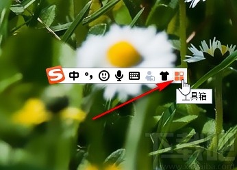 1.首先第一步我们需要找到电脑桌面搜狗输入法的状态栏,点击状态栏中的工具箱图标。