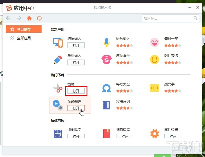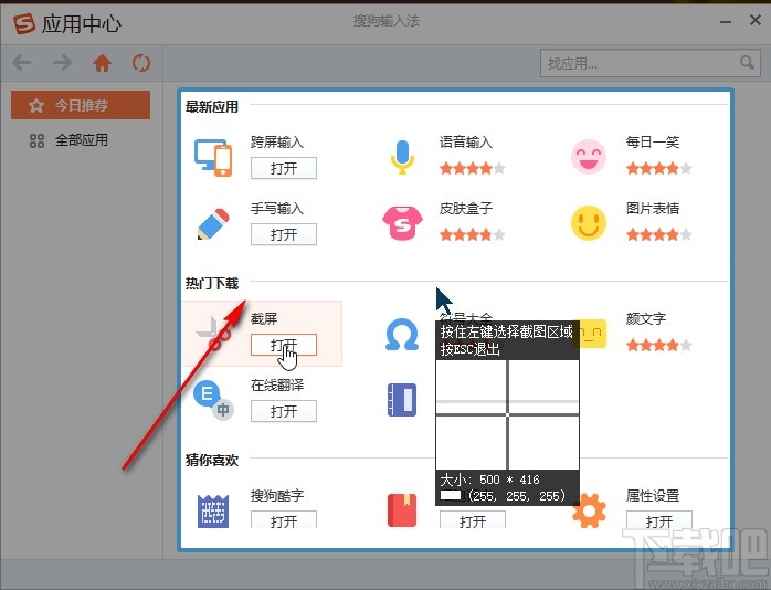 4.添加完成之后,我们就可以点击这个打开按钮进行使用这个工具了,比如小编点击使用截屏工具。