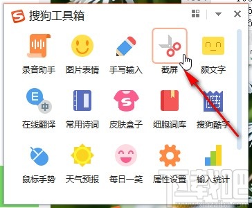 6.最后我们再次点击输入法状态栏上的工具箱图标,可以在工具界面中看到添加的截屏工具,如下图中所示。