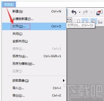 1.首先打开软件,我们点击界面左上角的“文件”选项,在其下拉框中选择“打开”按钮,将需要修改的cdr文件在软件中打开。
