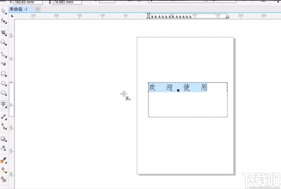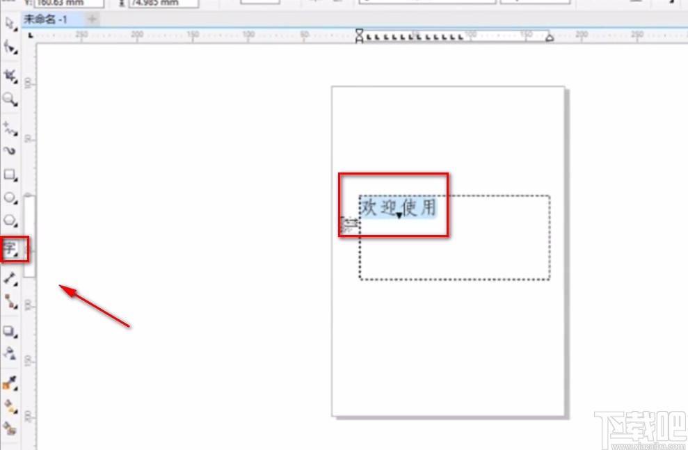 1.首先打开软件,我们在软件界面的左侧工具栏中点击“字”图标按钮,并在界面上打出文字。