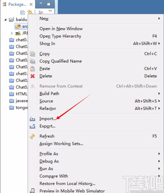 2.接着在界面左上方找到刚刚新建的项目并右击,在出现的下拉框中选择“Import”选项进行文件导入的操作。