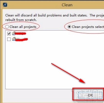 4.选好编译选项后,我们在Clean窗口底部可以找到“OK”按钮,点击该按钮就可以开始重新编译项目。