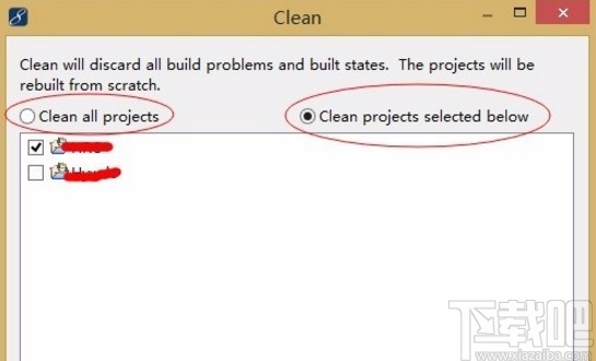 3.接着界面上就会弹出一个Clean窗口,窗口中有两个选项,第一个表示编译工作空间的所有项目,第二个表示编译下面选中的项目,我们根据自己的需要进行选择即可。