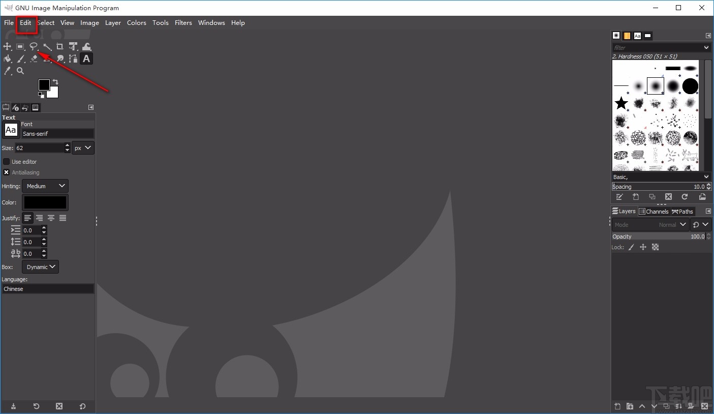 1.首先打开软件,在软件界面的左上方找到“Edit”选项,我们点击该选项会出现一个下拉框。