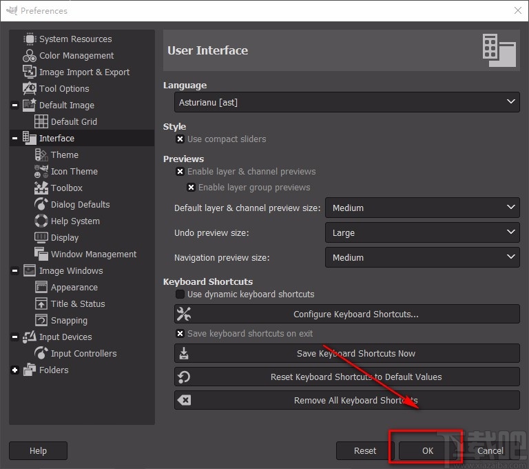 5.完成以上步骤后,我们在窗口右下角找到“OK”按钮,点击该按钮就可以成功将界面语言设置为中文。