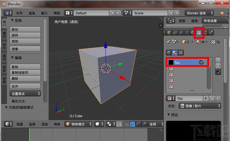 3.紧接着需要选择纹理图标,然后创建一个纹理,创建之后在右边的材质列表中是可以点击查看到的。