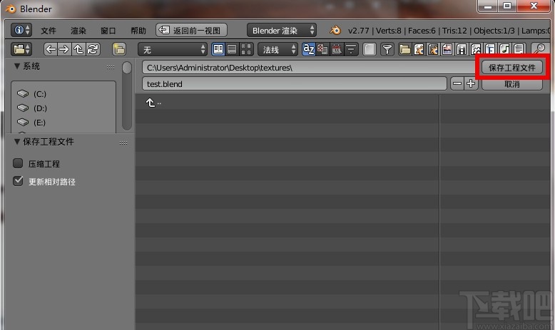 6.接下来下一步就需要按下键盘Ctrl+S键,然后在出现的界面选择保存工程文件按钮并点击,就可以将创建的材质数据给保存下来了。